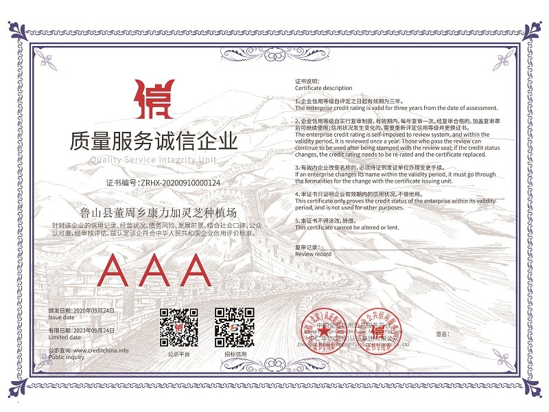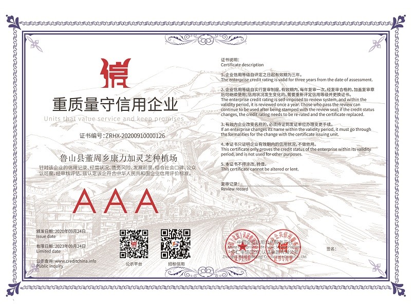 2020年國(guó)家又精準(zhǔn)扶貧建了28個(gè)標(biāo)準(zhǔn)種植大棚,又自建了60個(gè)大棚,靈芝孢子粉的產(chǎn)量有望翻倍增加,產(chǎn)量和產(chǎn)值的雙倍增加,相信2023年康力加靈芝種植場(chǎng)會(huì)錦上添花,更上一層樓。康力加的經(jīng)營(yíng)理念“質(zhì)量第一、信譽(yù)至上、客戶最高”愿我們的合作共贏,給人們一個(gè)健康體魄!
